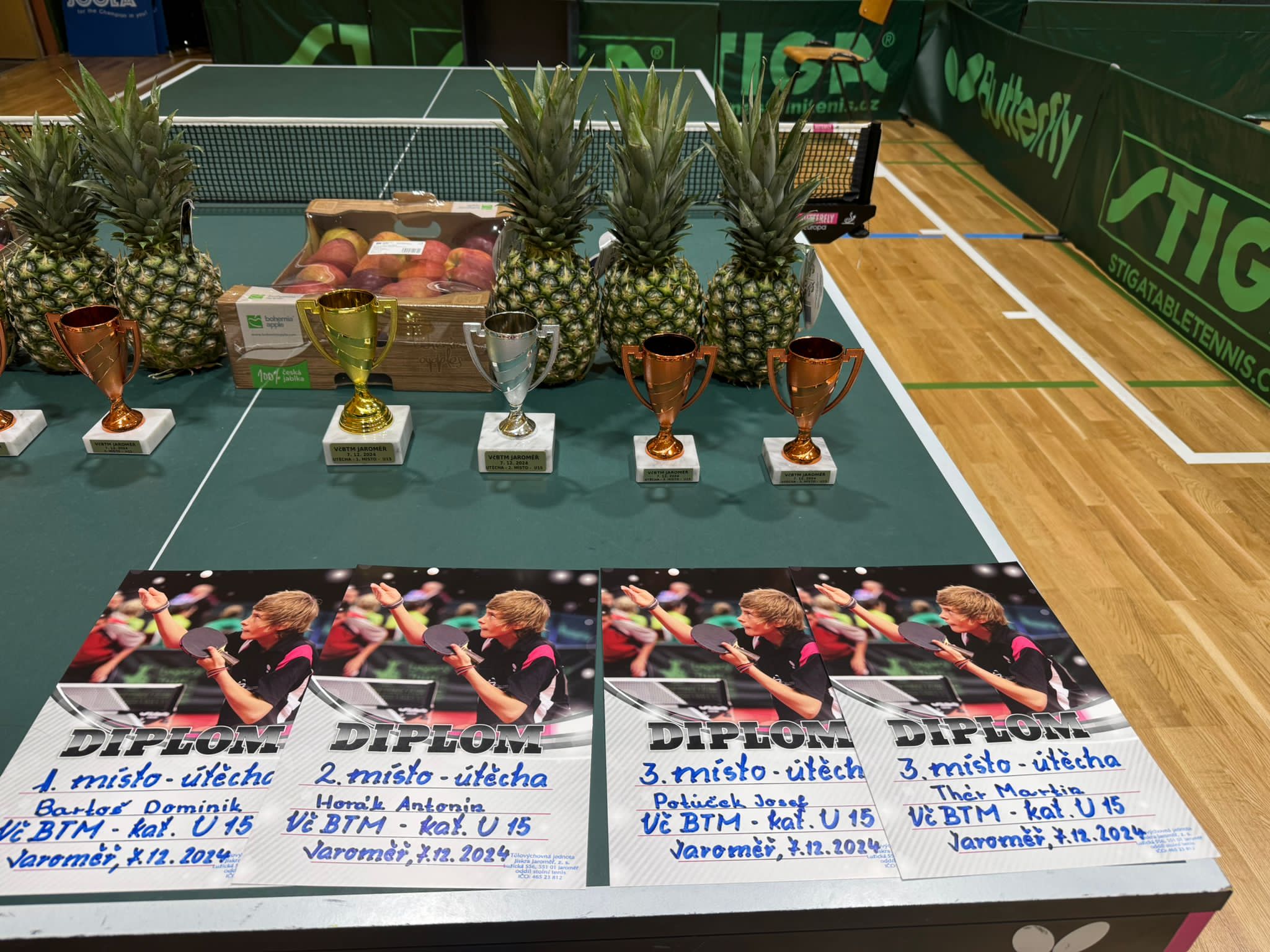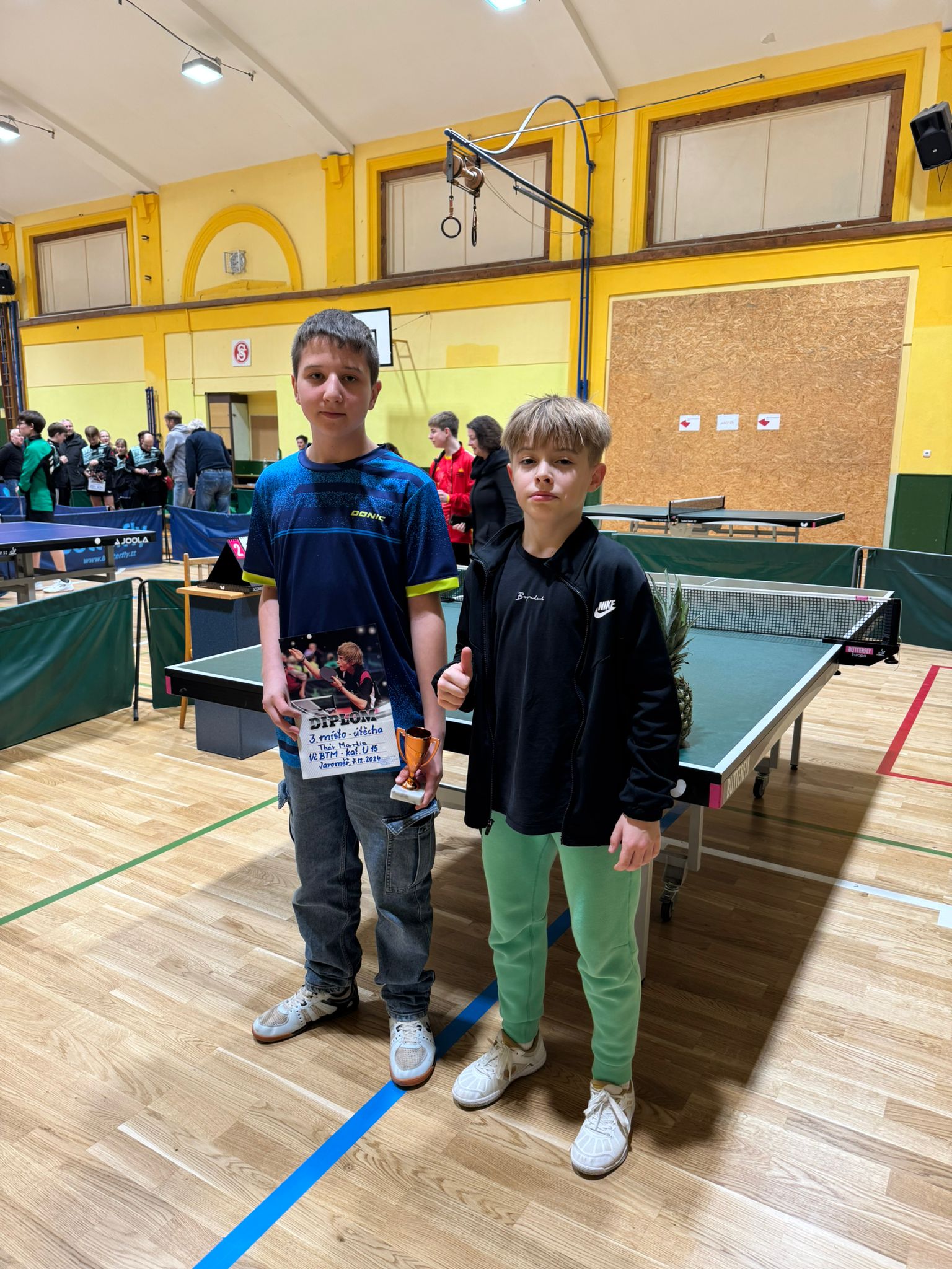Naši žáci se zúčastnili dalšího bodovacího turnaje Hradeckého a Pardubického kraje U15 v Jaroměři. Michal Mach postoupil ze skupiny. V pavouku první zápas vyhrál, ale pak prohrál s hráčem z Hradce a umístil se na 9.-16. místě. Martin Thér nepostoupil ze skupiny, ale v soutěži útěchy skončil na třetím místě. Po čtyřech kolech regionálního přeboru dorostu jsou naši žáci na 1. místě. Pěkné úspěchy!