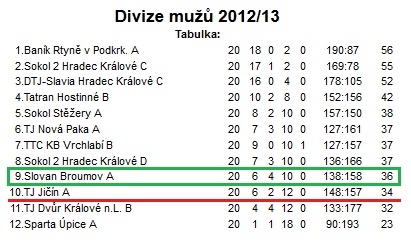Není bez zajímavosti, že pokud Slovan Broumov "A" zvládne na domácích stolech porazit oba dva své poslední soupeře, velmi reálně ještě může skončit v horní polovině divizní tabulky, a to dokonce na pátém místě z dvanácti účastníků! To by byl pro nováčka soutěže a zároveň nejvýše hrající stolně - tenisový oddíl v náchodském okrese úžasný výsledek.