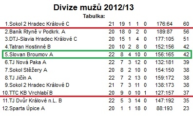 Všichni broumovští stolní tenisté zatěžkali konto soupeře minimálně jedním bodem. Vedle Vládi Vodala si udělal radost i Jiří Ďoubek, který měl jako jediný příležitost nastoupit ke všem třem dvouhrám, což také dokázal poprvé v divizi zúročit ve tři body.